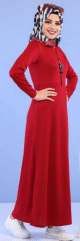 Robe longue décontractée sobre pour femme voilée - Couleur Rouge bordeaux (Robes et tenues pas cher pour hijab) - REF. 30816 (19.90 €)