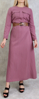 Robe longue évasée avec poches et ceinture marron - Couleur Mauve - REF. 32116 (35.00 €)