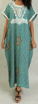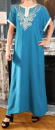 Robe orientale longue de maison / d'été manche courte avec belles broderies pour femme - Couleur Bleu canard - REF. 33585 (25.00 €)