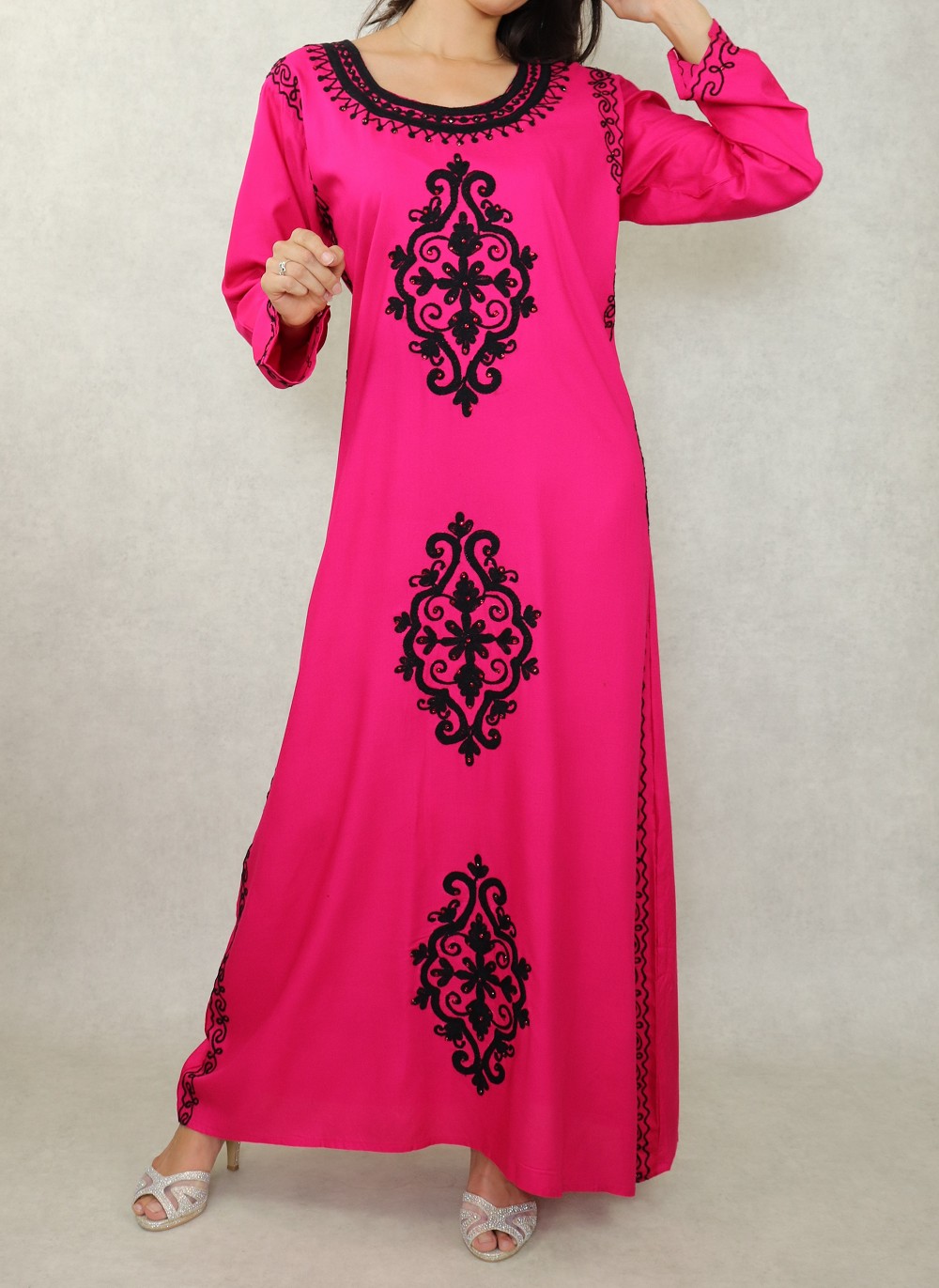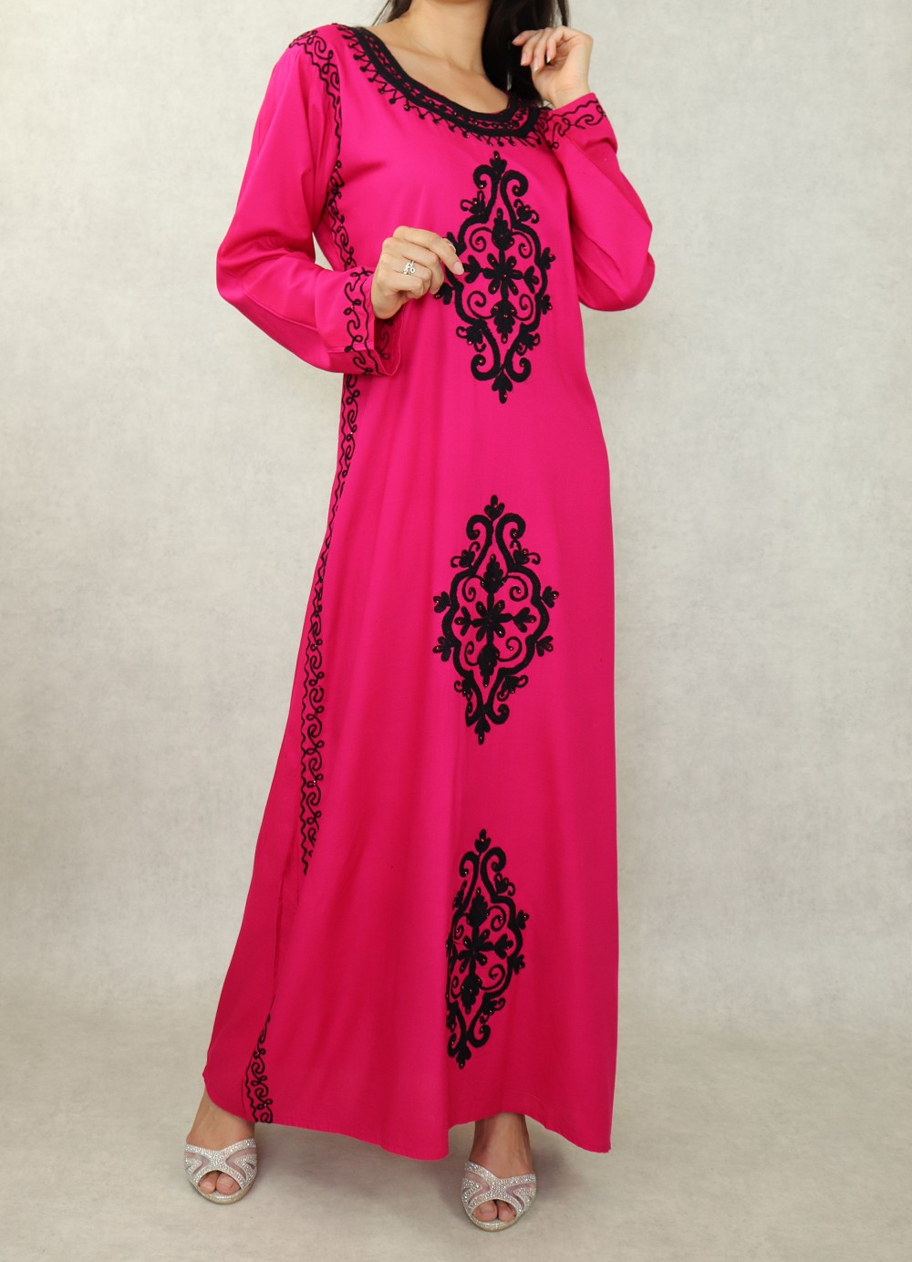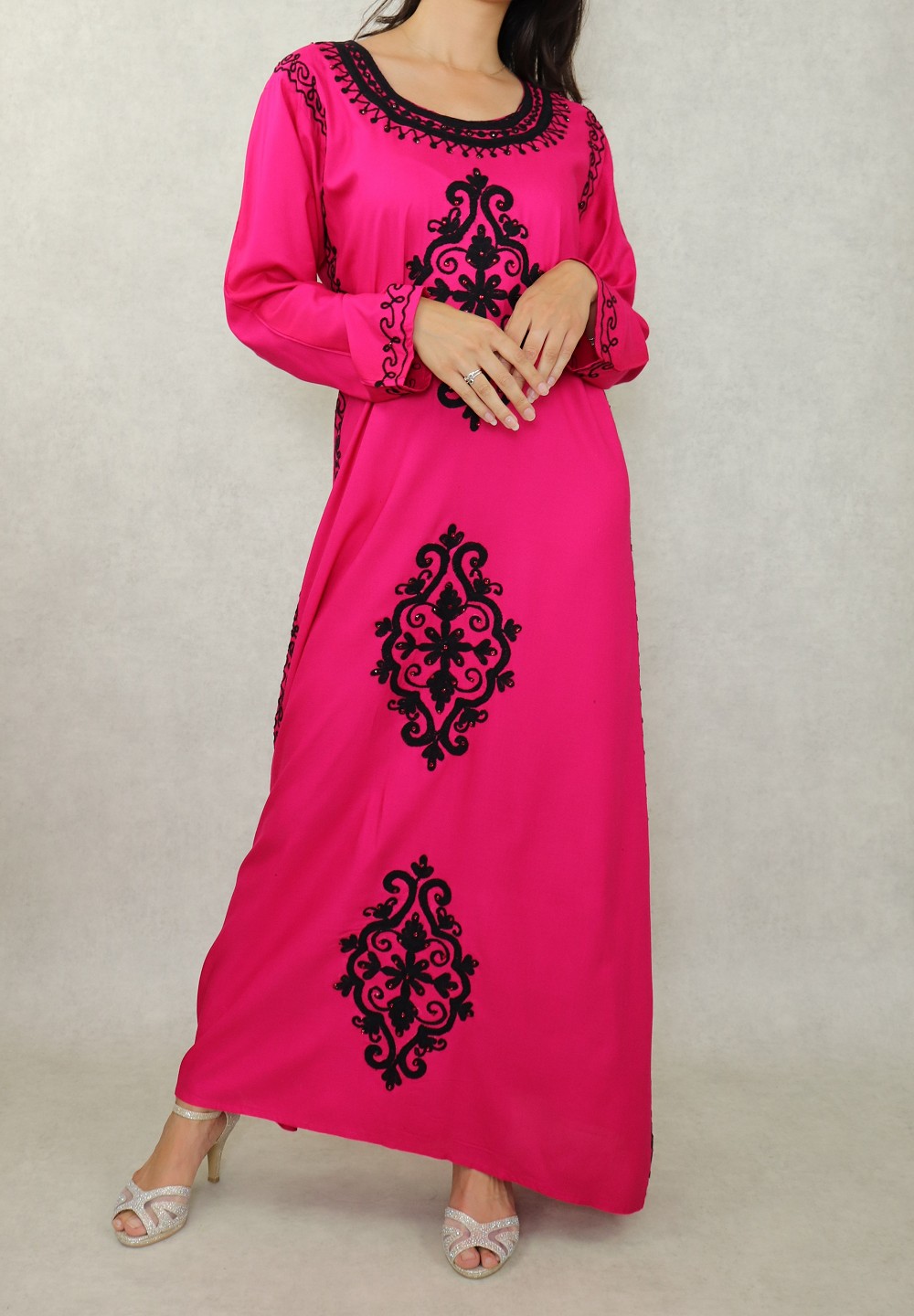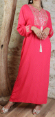 Robe maxi-longue avec de nombreuses broderies à motif fleurs style oriental pour femme - Couleur Rose fuchsia Vetement & Accessoire