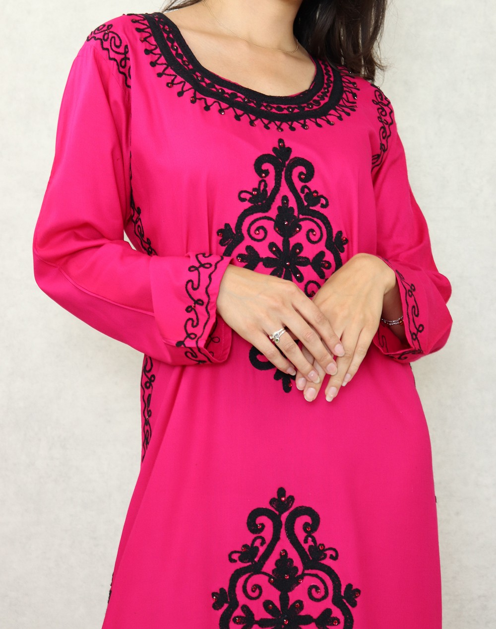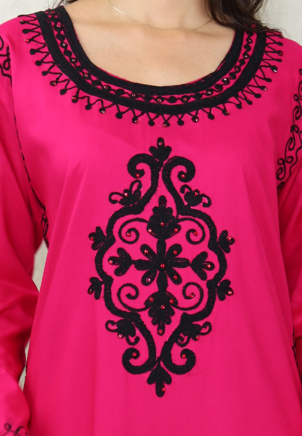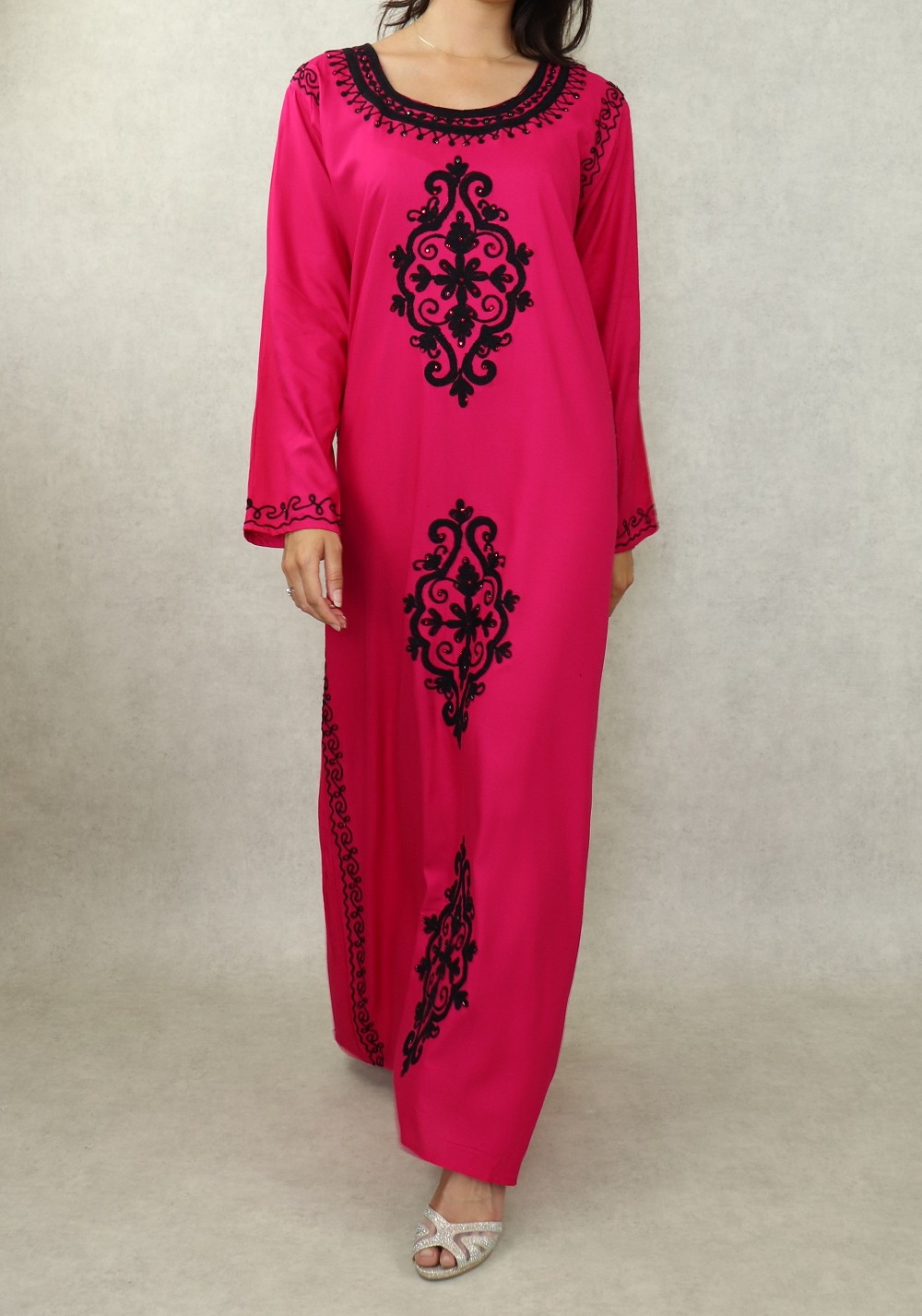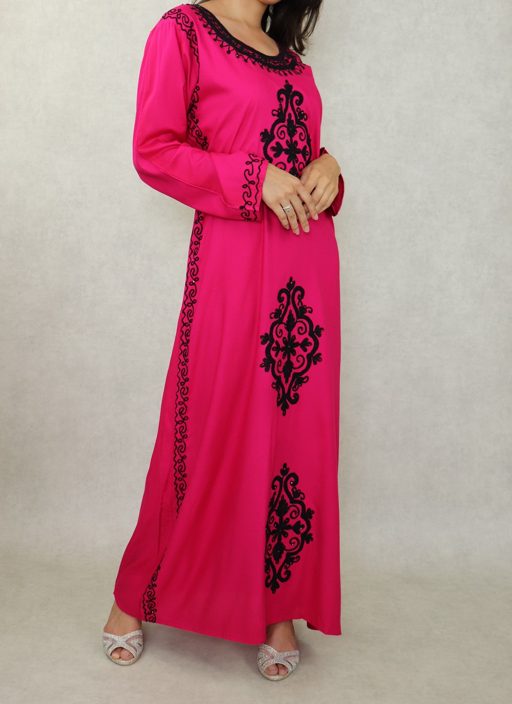 Robe maxi-longue avec de nombreuses broderies à motif fleurs style oriental pour femme - Couleur Rose fuchsia Vetement & Accessoire