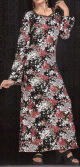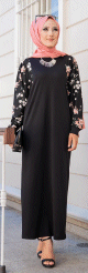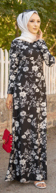 Robe longue imprimé floral (Robes Hijab pas cher en ligne Modest Fashion France) - Couleur Noir - REF. 33839 (19.90 €)