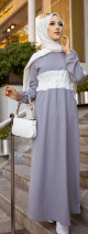 Robe longue casual (Mode Musulmane) - Couleur Gris clair et blanc - REF. 34009 (29.00 €)