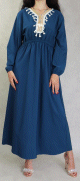 Robe longue pour femme avec broderies sur le devant et les manches - Couleur bleu marine - REF. 38887 (29.00 €)