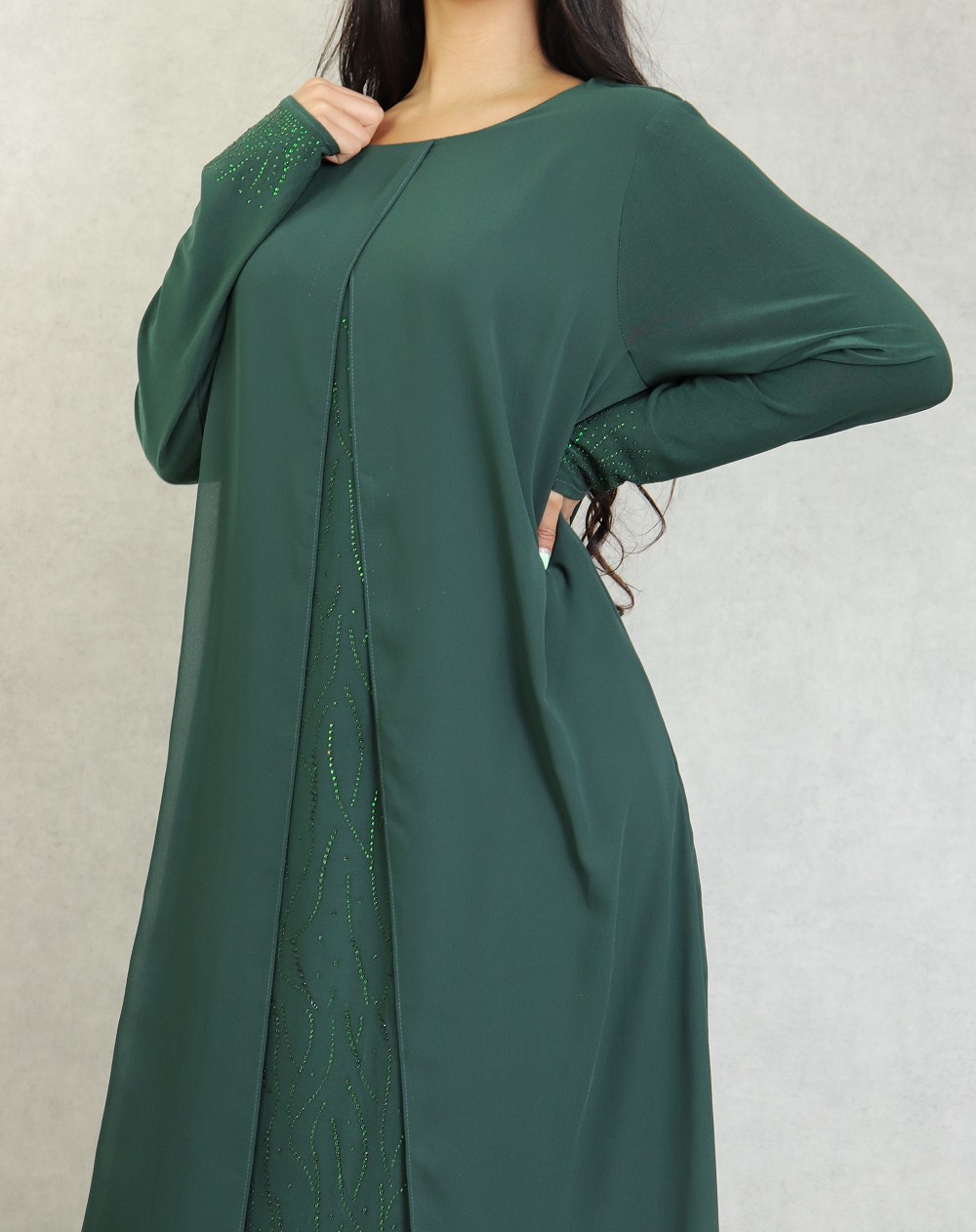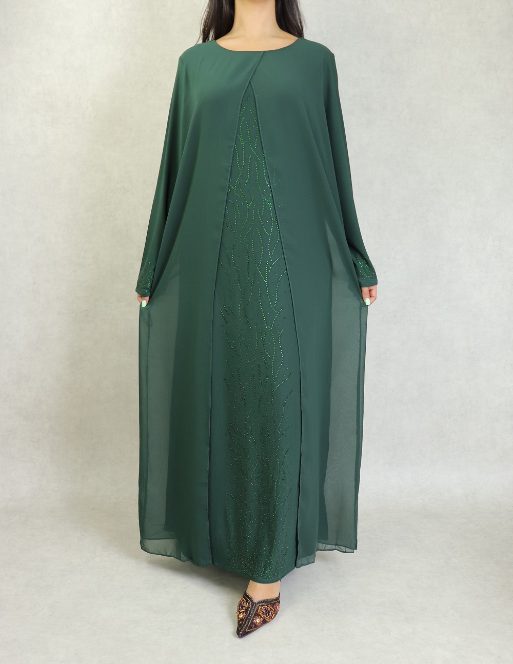 Robe Abaya Dubaï de qualité brodée à la main ouverte à l'avant - Couleur vert sapin foncé - REF. 38219 (49.00 €)