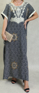Robe marocaine d'été manches courtes avec broderies - Couleur Bleu marine - REF. 32389 (28.00 €)