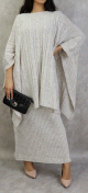 Ensemble robe et poncho grosse maille pour femme (Saison Automne-Hiver) - Couleur Gris - REF. 33617 (38.00 €)
