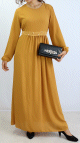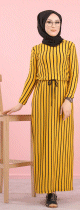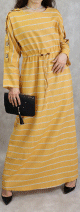 Robe maxi-longue à rayures mode décontracté ceinture intégrée (Vêtement femme Hijab en ligne) - Couleur Moutarde - REF. 32337 (25.00 €) - En Promotion à 19.00 €