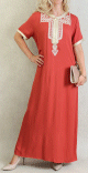 Robe marocaine d'été manches courtes avec broderies - Couleur rouge brique - REF. 32368 (28.00 €)