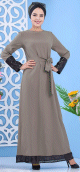 Robe tissu polaire avec ceinture (Vêtement Hijab Saison Automne-Hiver) - Couleur kaki - REF. 35699 (26.90 €)