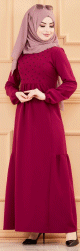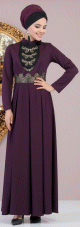 Robe longue chic et classe avec perles (Vêtement habillé mastour pour femme voilée) - Couleur prune - REF. 35984 (36.00 €)