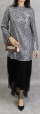 Tenue de soirée (Ensemble femme 2 pièces) à strass argentés et tulle - Couleur noir et argenté - REF. 32676 (49.00 €)