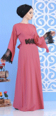 Robe de soirée élégante maxi-longue à dentelle noire pour femme - Couleur rose foncée - REF. 32704 (49.90 €)