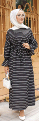 Robe longue à rayures avec ceinture pour femme voilée - Couleur noire - REF. 33206 (29.90 €)