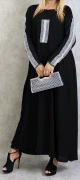 Robe femme de type Abaya Dubai moderne et chic à strass argentés et écharpe noire assortie - REF. 33307 (40.00 €)