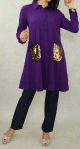 Chemise tunique mi-longue avec poches dorées (Plusieurs couleurs disponibles) - REF. 33565 (35.00 €)