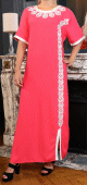 Robe orientale style arabe à manches courtes brodée avec perles et strass - Couleur Saumon - REF. 37686 (28.00 €)