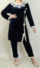 Ensemble style Jabador velours avec broderies pour femme - Deux pièces tunique pantalon - Couleur Bleu marine - REF. 34334 (32.00 €)