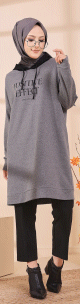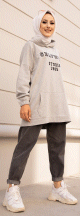 Tunique type sweat long à capuche (Vêtement moderne décontracté pour Hijab) - Couleur gris - REF. 35423 (22.00 €) - En Promotion à 16.90 €