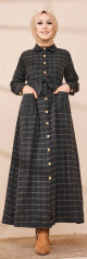Robe chemise longue boutonnée à carreaux - Saison Automne-Hiver (Mode musulmane) - Couleur anthracite et vert - REF. 35647 (24.90 €)