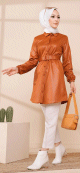Tunique brillante avec ceinture (Vêtement moderne pour femme voilée) - Couleur brique - REF. 35688 (25.00 €)