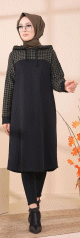 Tunique avec capuche bicolore (Tenue moderne pour Hijab) - Couleur noir et kaki - REF. 35840 (23.00 €)