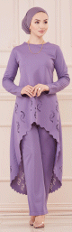 Ensemble découpé au laser : Tunique et pantalon assorti pour femme (Vêtement hijab habillé) - Couleur lilas - REF. 37087 (38.00 €)