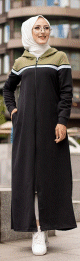 Robe longue à capuche zippée pour femme (Vêtement Hijab décontracté et sport) - Couleur Noir et Kaki - REF. 37160 (29.90 €)