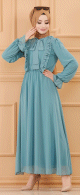 Robe de soirée chic pour femme (Tenue style habillé pour hijab) - Couleur indigo clair - REF. 37833 (45.00 €)