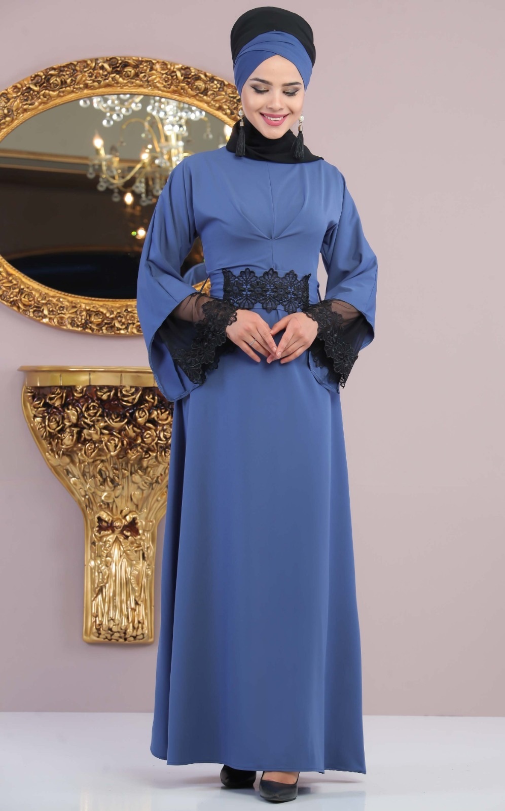 Robe chic coupe évasée à manches longues, féminine en dentelle avec col rond. Sa ceinture assortie à attacher par derrière. Avec les bons accessoires, Cette robe est parfaite pour les occasions décontractées comme festives.
