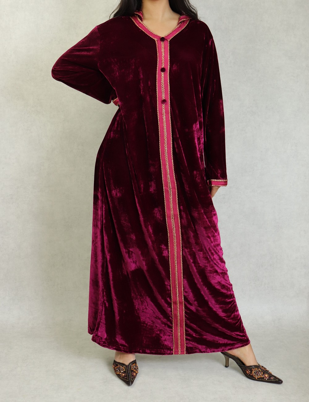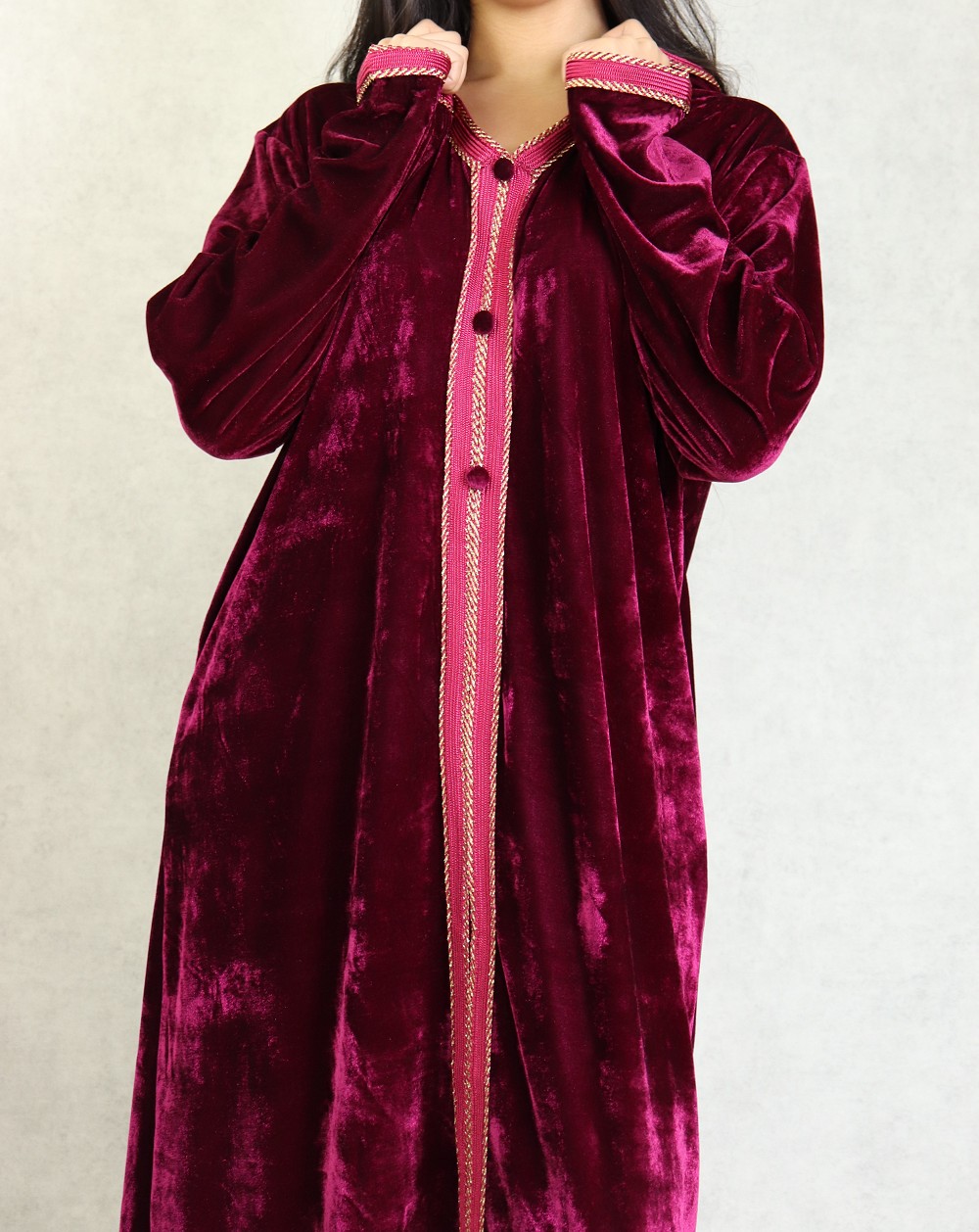 Robe Djellaba longue avec capuche pour femme (Automne Hiver) - Couleur Bordeaux