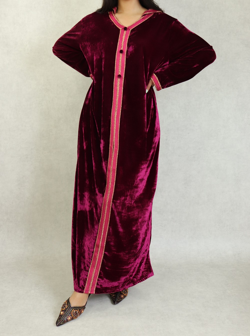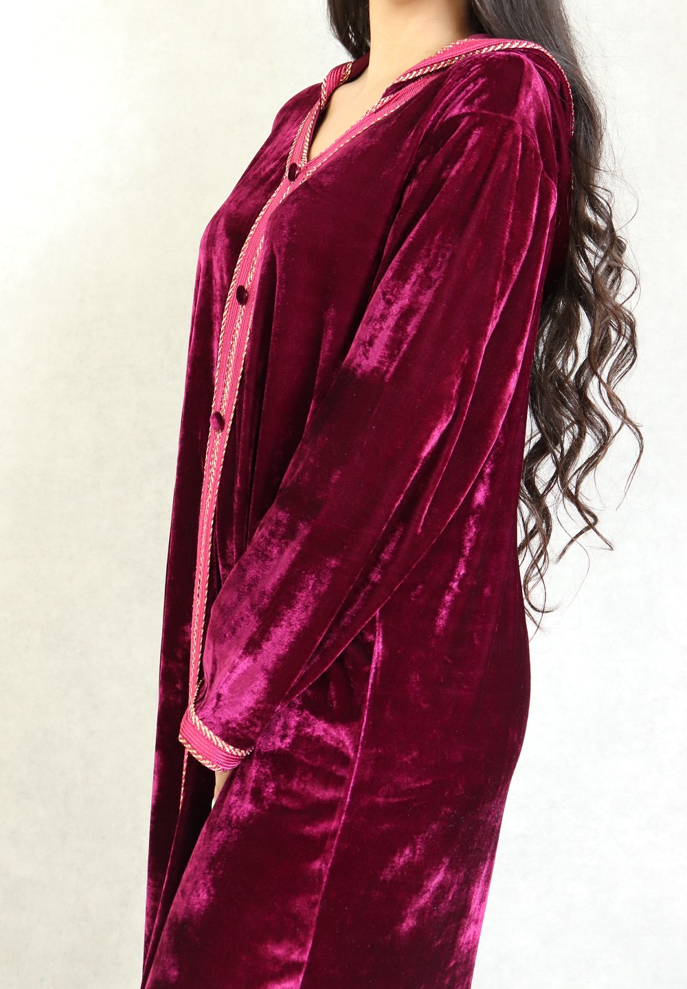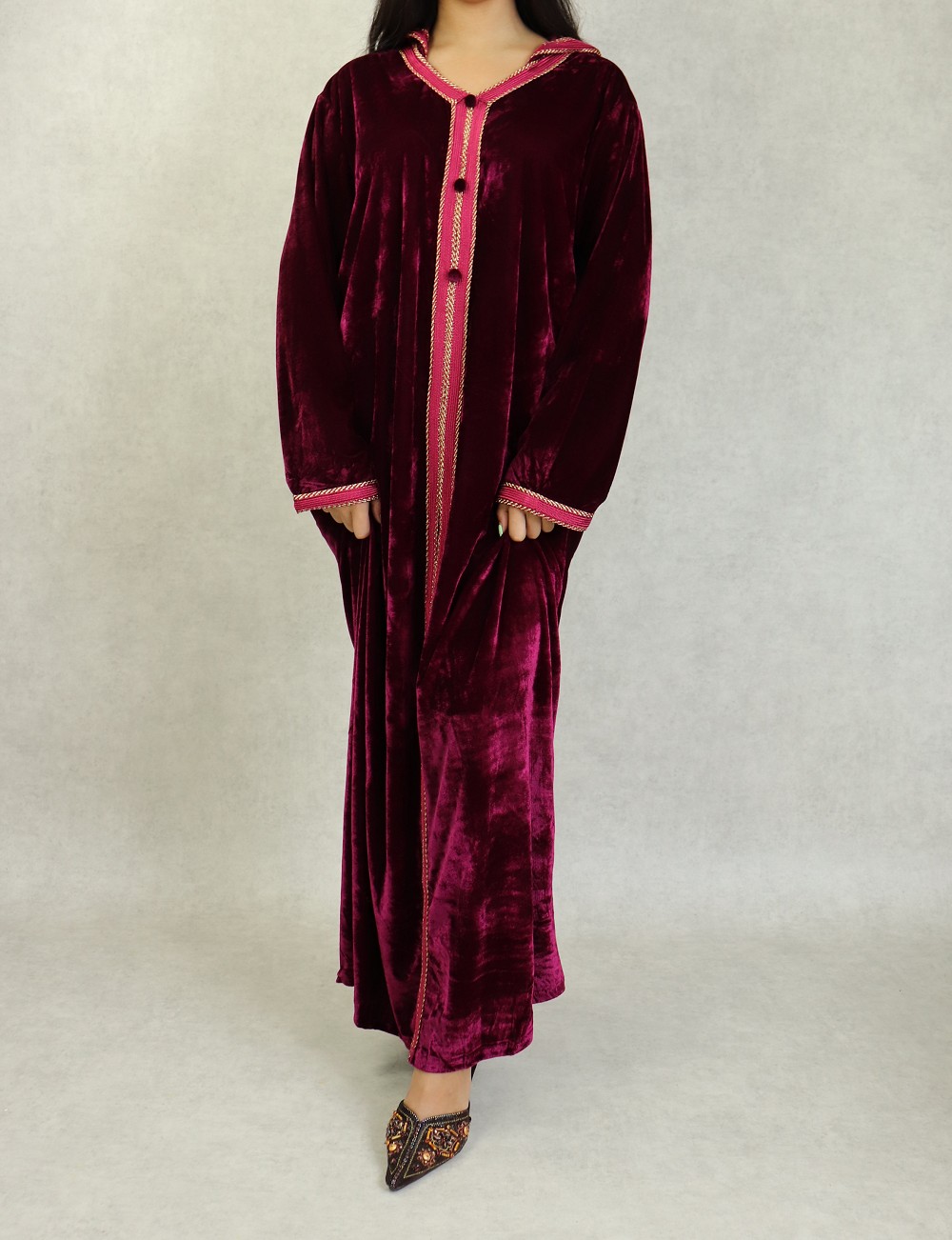 Robe Djellaba longue avec capuche pour femme (Automne Hiver) - Couleur Bordeaux Vetement & Accessoire