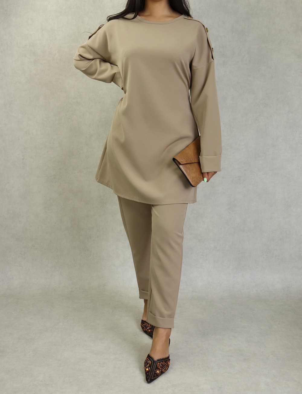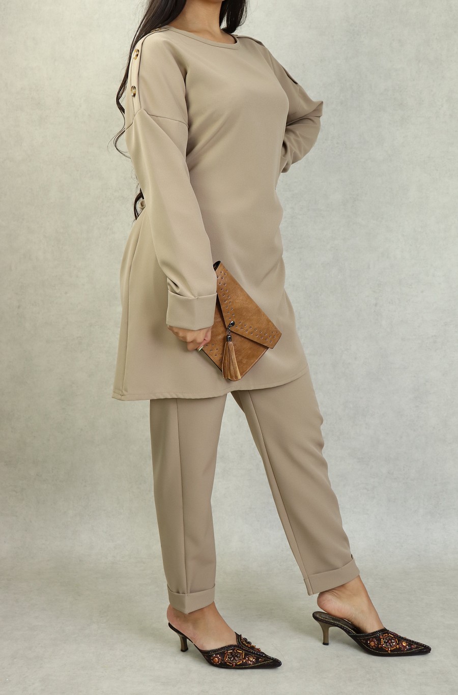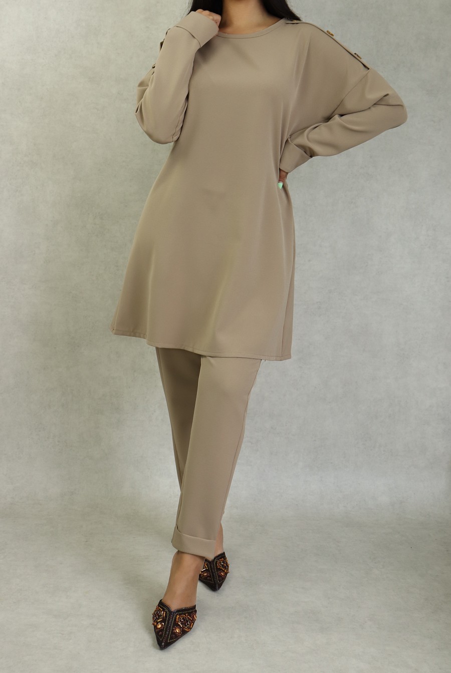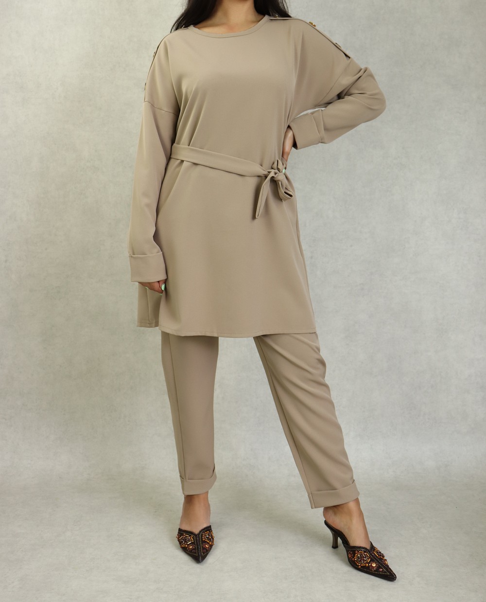 Ensemble casual pour femme : deux pièces tunique mi-longue et pantalon - Couleur Taupe Vetement & Accessoire
