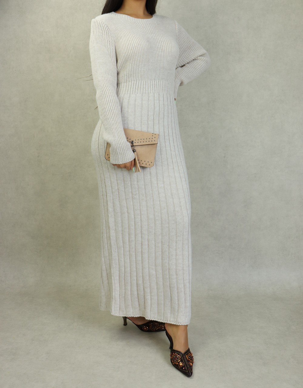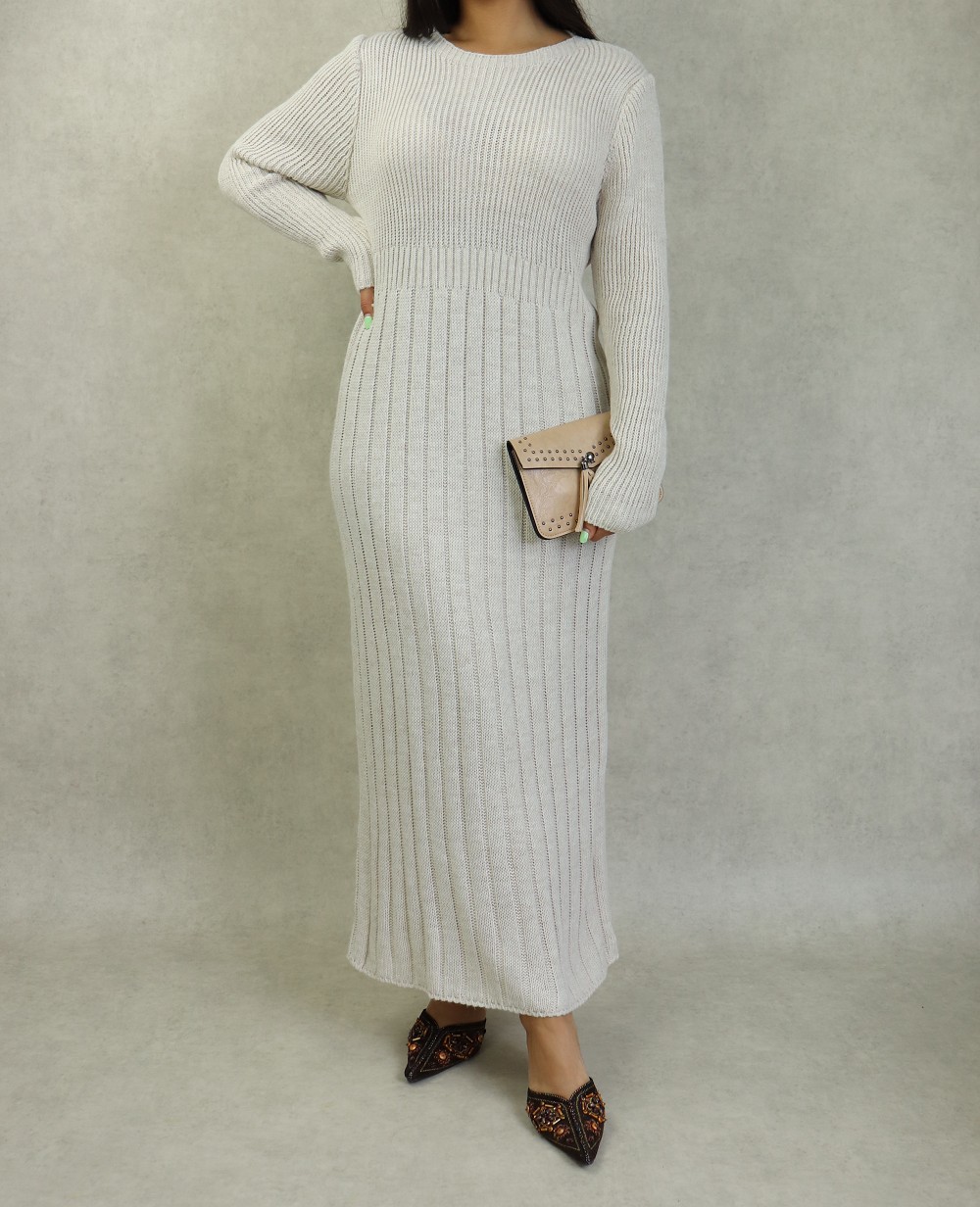 Robe en grosse maille pour femme (Saison Automne Hiver) - Couleur Blanc cassé Vetement & Accessoire