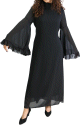 Robe de soirée Abaya Dubaï ample de qualité avec broderie strass argentés et ceinture interne - Couleur noir - REF. 38185 (45.00 €)