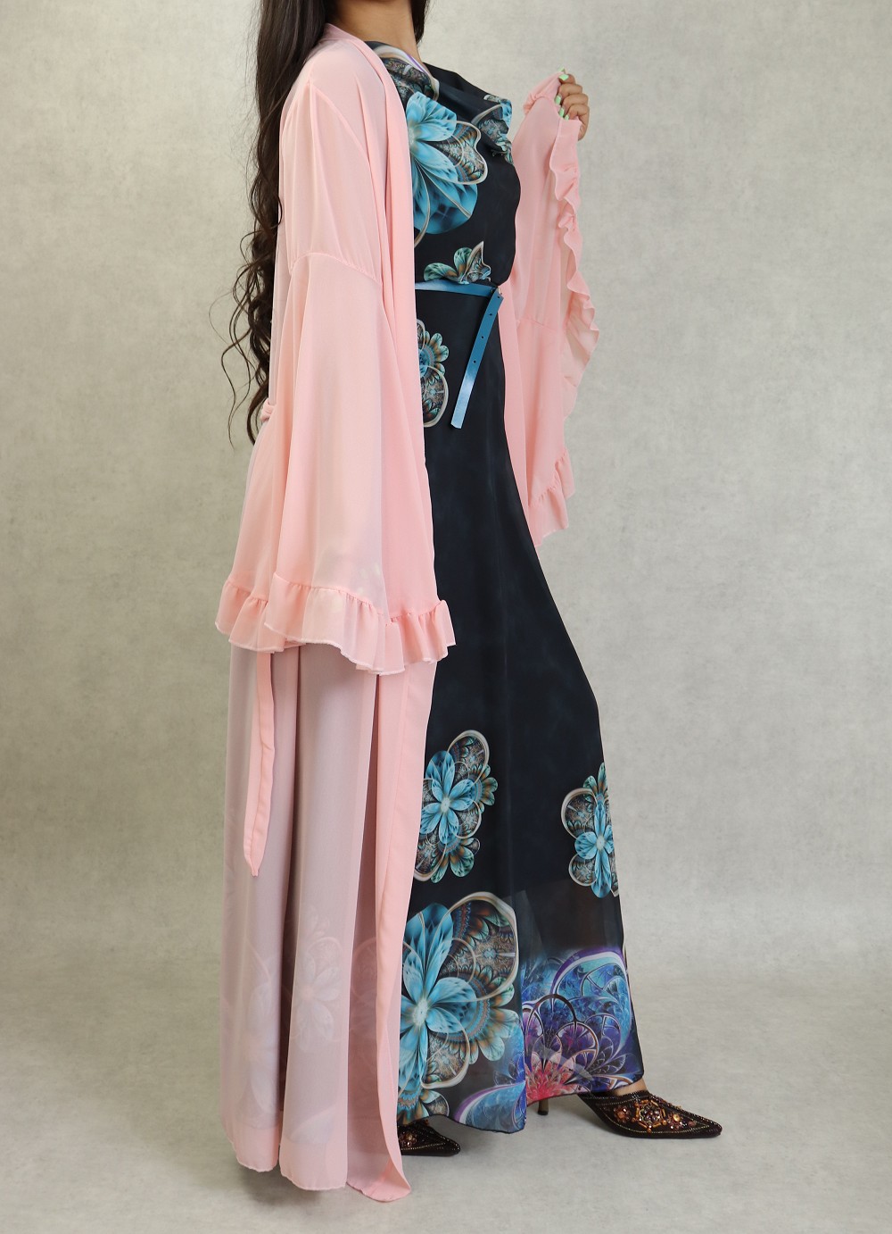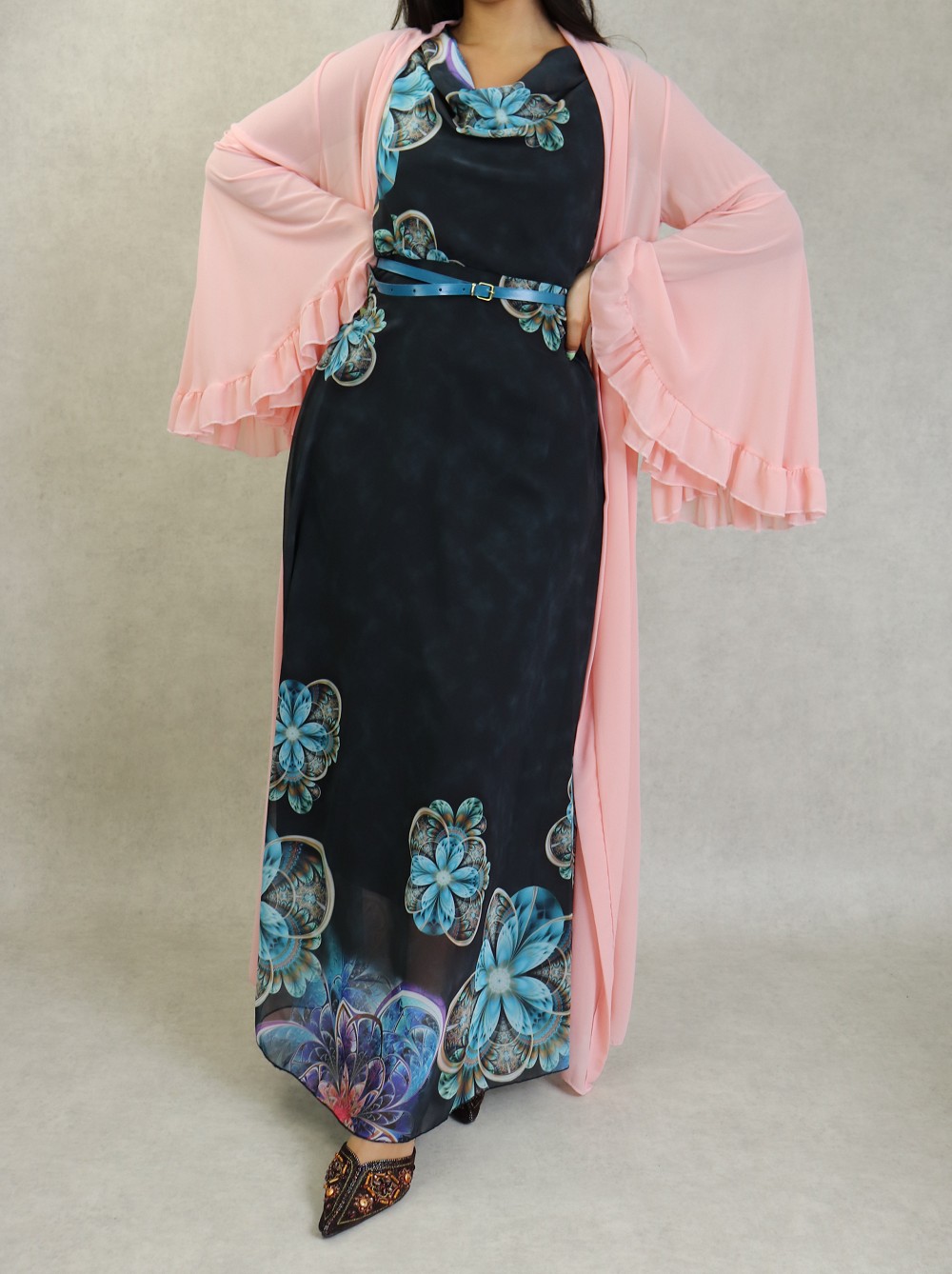 Robe longue avec capuche style Urban moderne (Vetement pour femme voilée) - Couleur noir et rose - REF. 32258 (25.00 €)