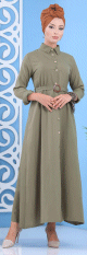Robe longue boutonné avec ceinture - Couleur Kaki - REF. 30281 (29.90 €) - En Promotion à 24.90 €