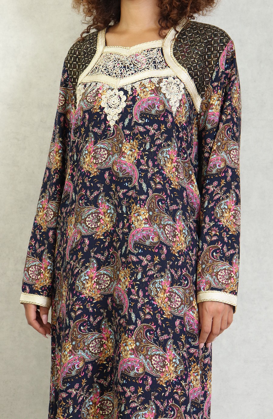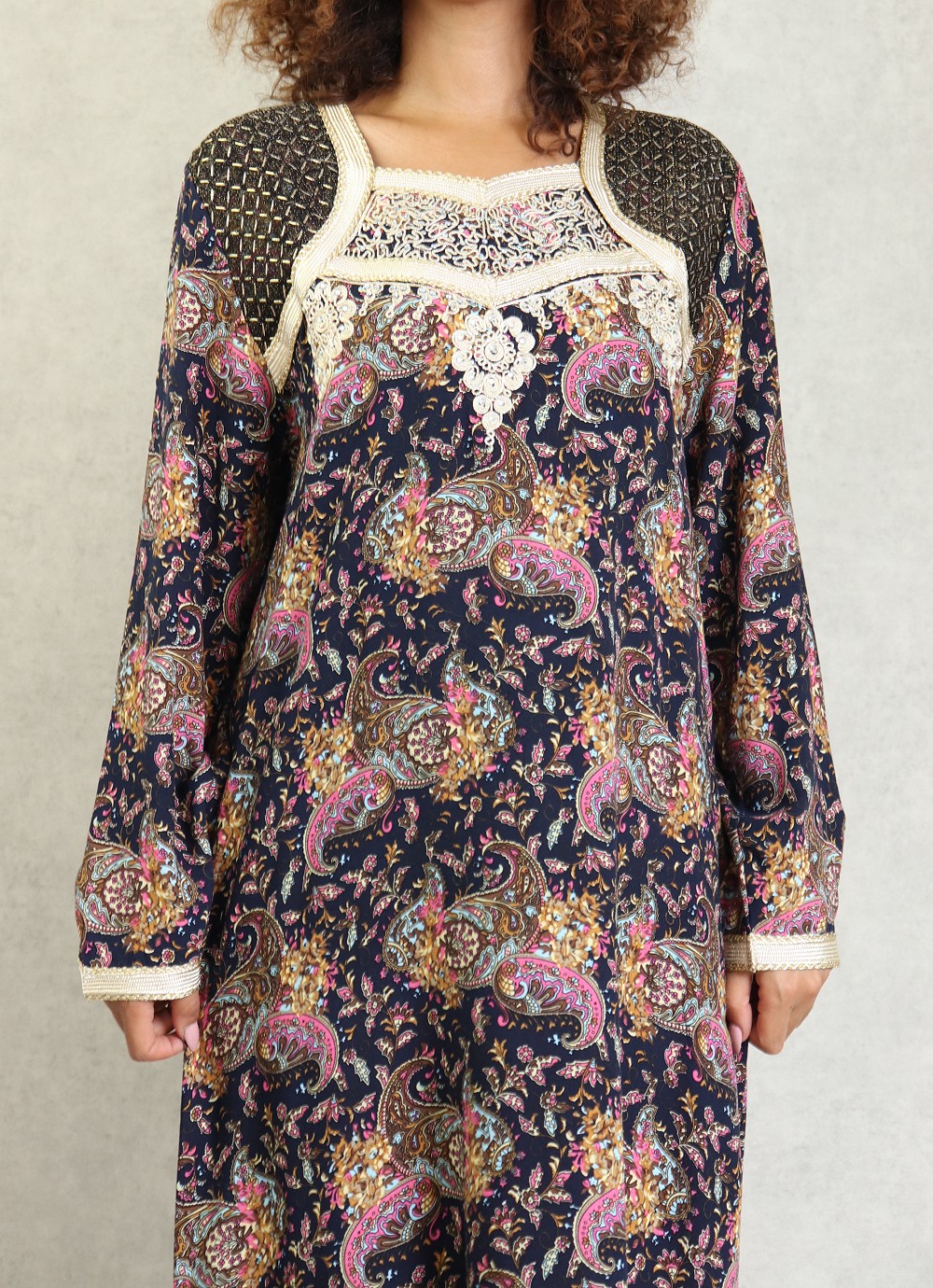 Robe longue style arabe brodée à motif cachemire pour femme - Couleur Bleu nuit Vetement & Accessoire
