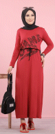 Robe longue décontractée imprimée "Game Over" (Vetement pas cher pour femme voilée) - Couleur framboise - REF. 34646 (19.90 €) - En Promotion à 16.90 €