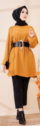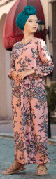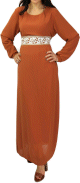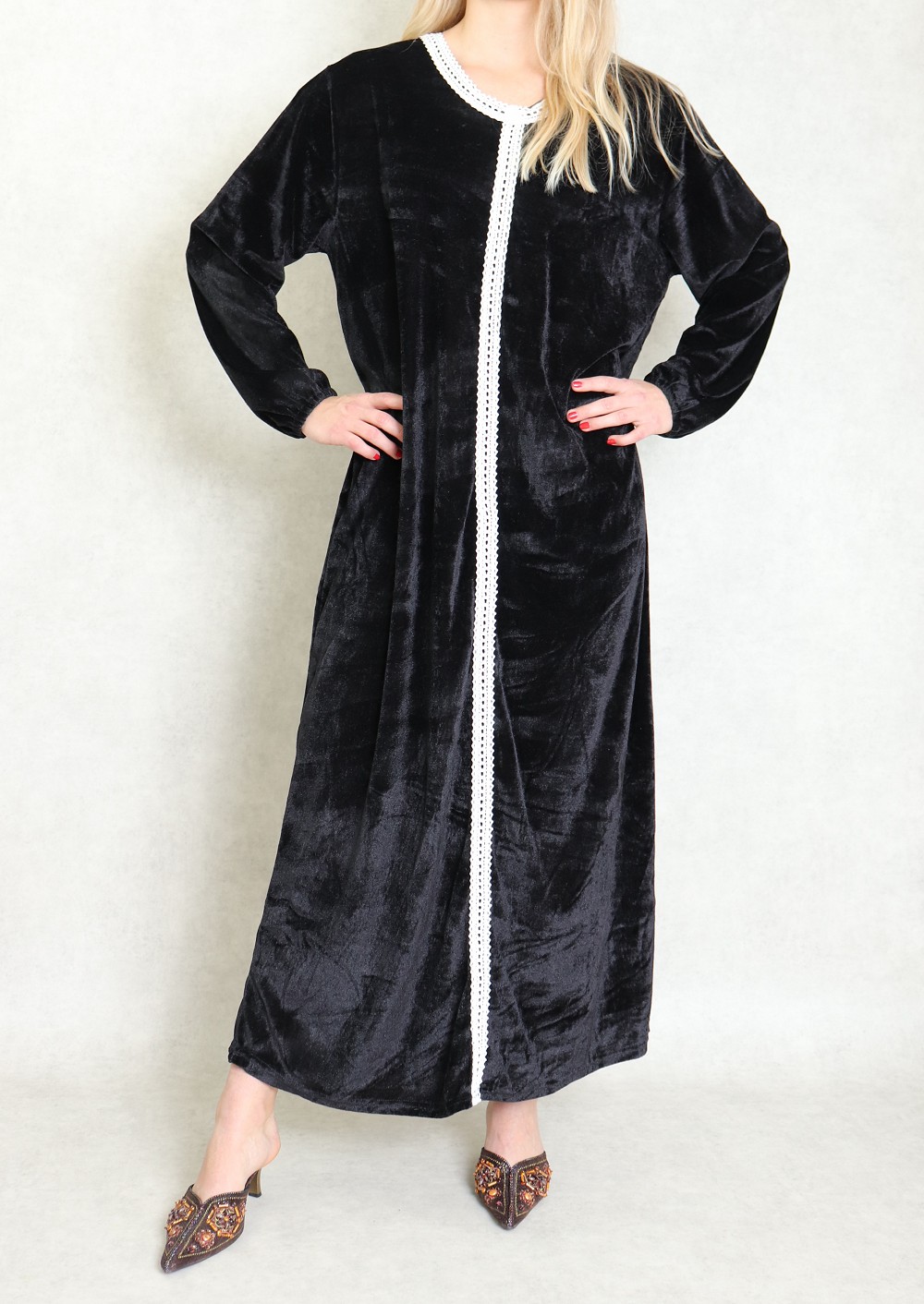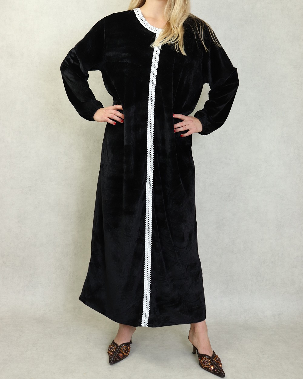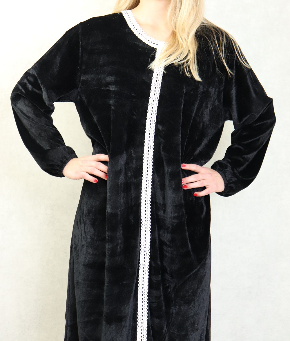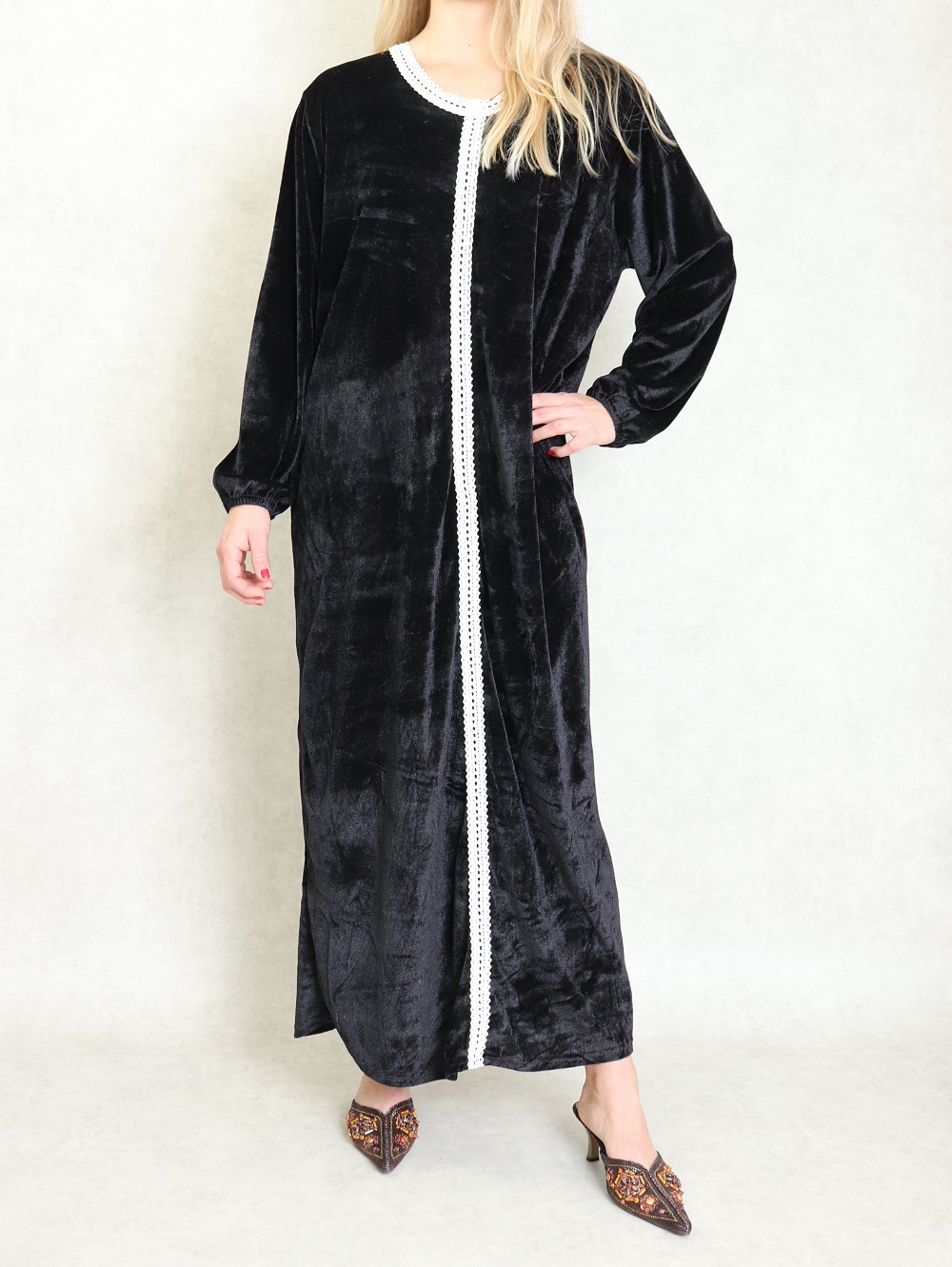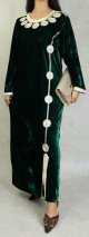 Robe orientale longue d'hiver ou d'intérieur, manches longues élastique au poignets, col en V, orné de broderies sur toute la longueur.