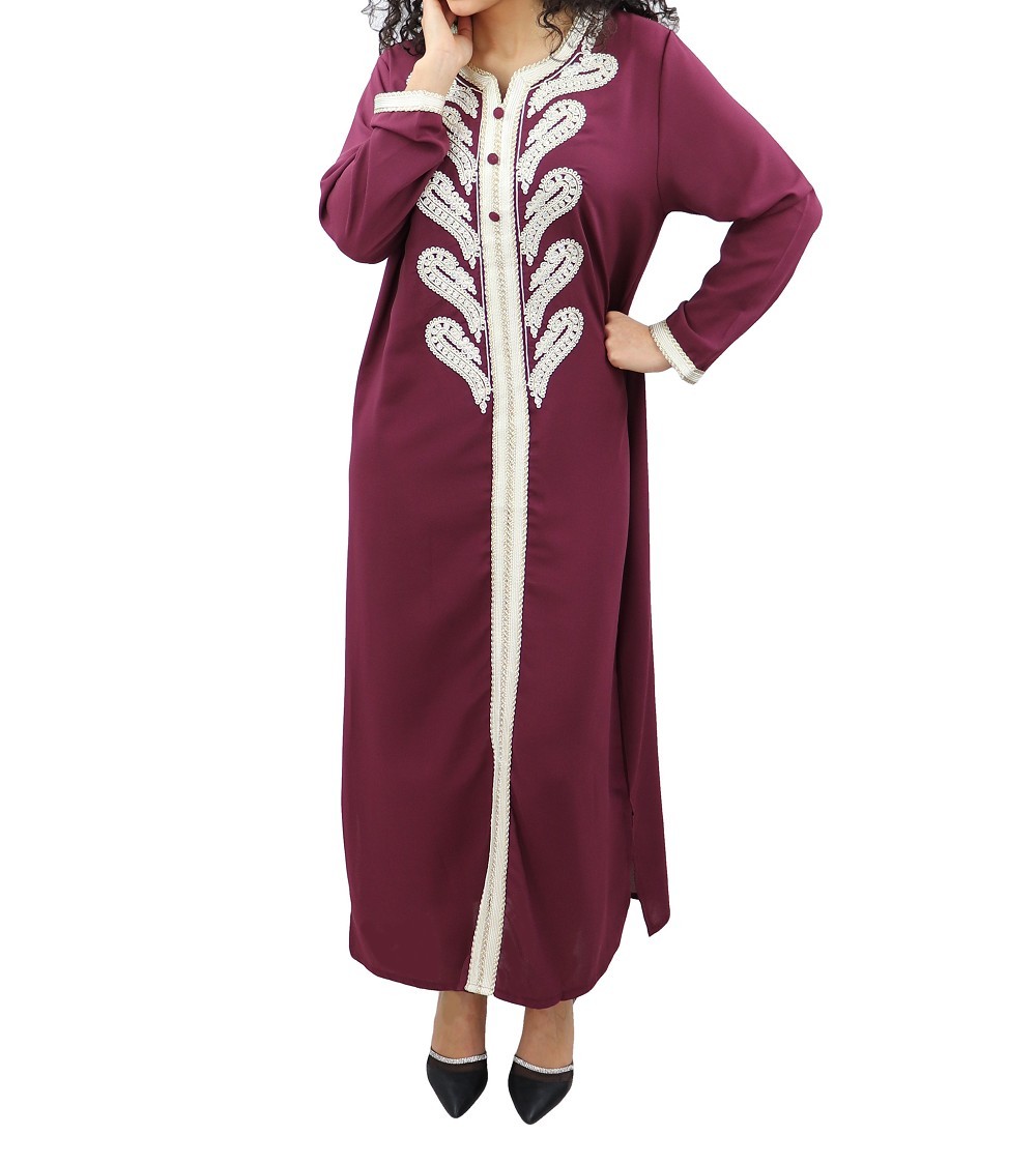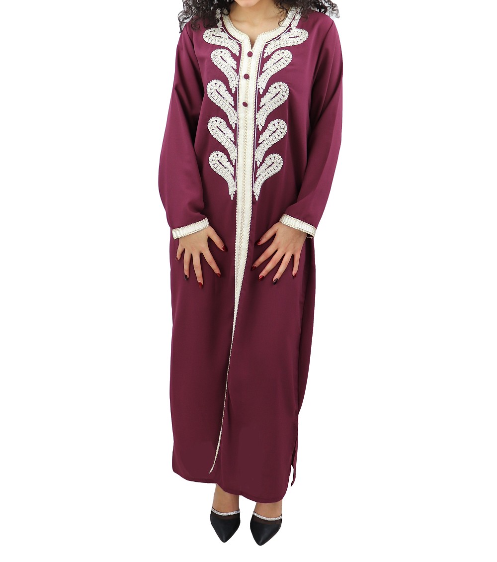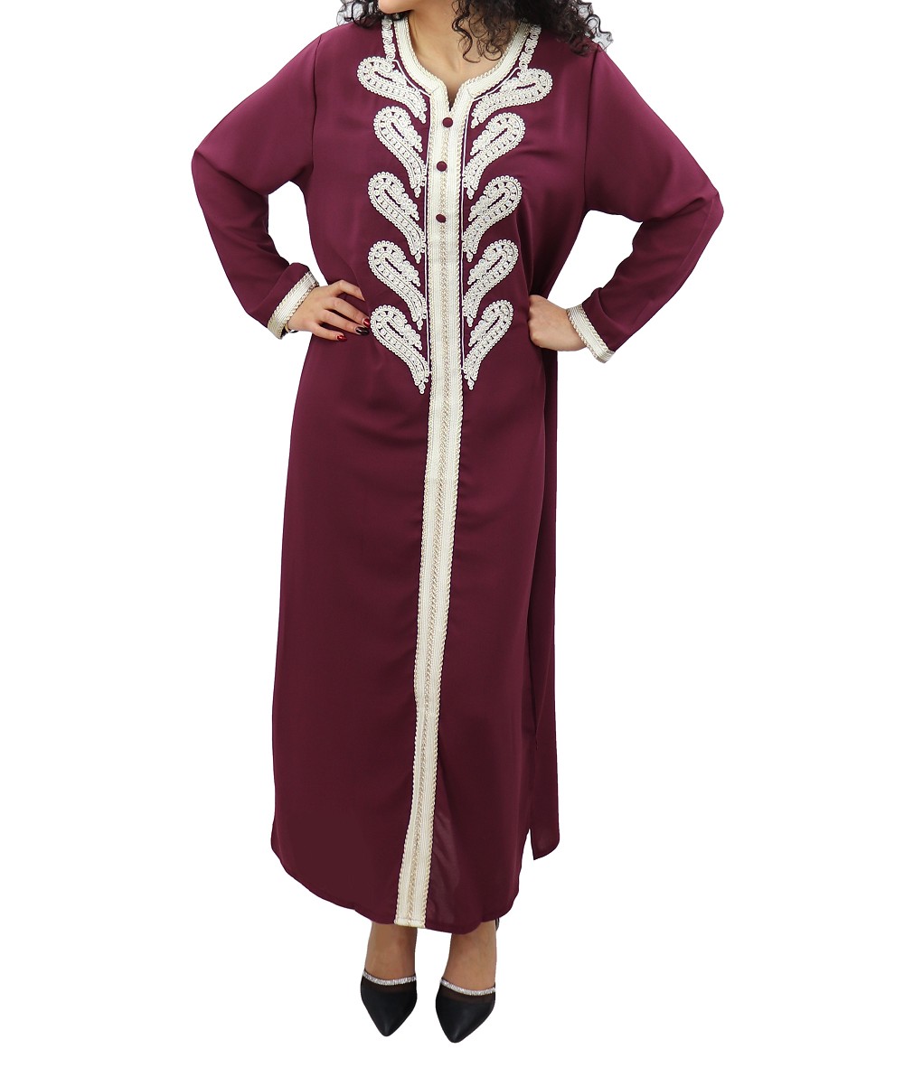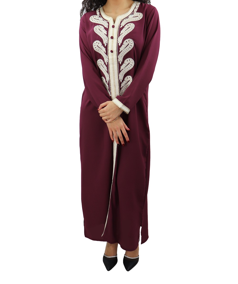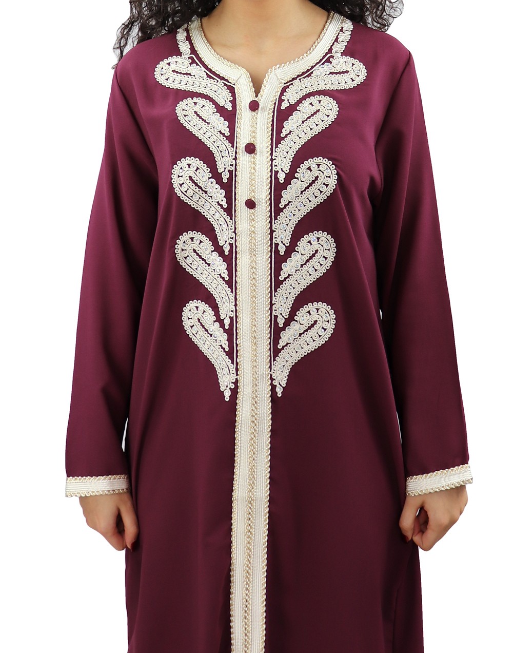 Robe orientale manches courtes style tunisien avec broderies - Couleur Bordeaux - REF. 31629 (29.90 €)