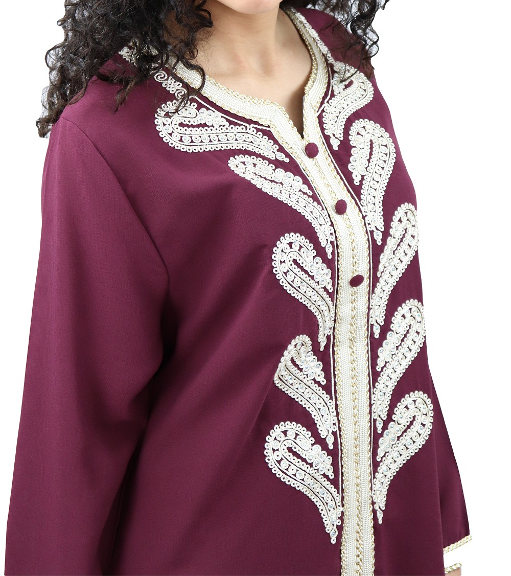 Robe orientale avec broderies et strass pour femme - Couleur bordeaux Vetement & Accessoire