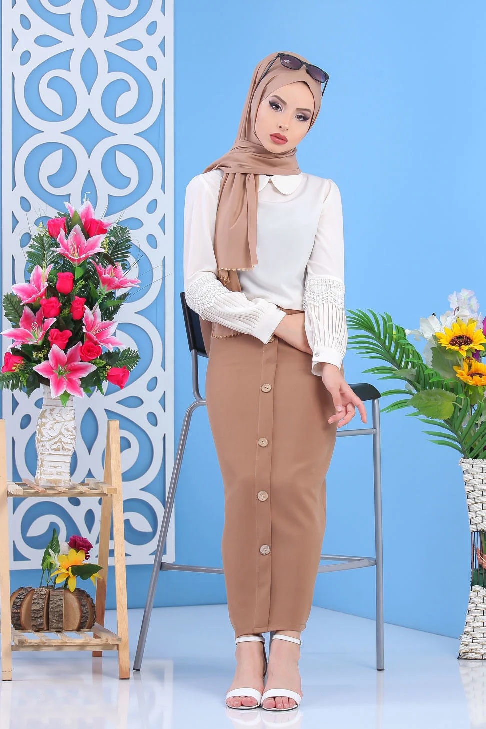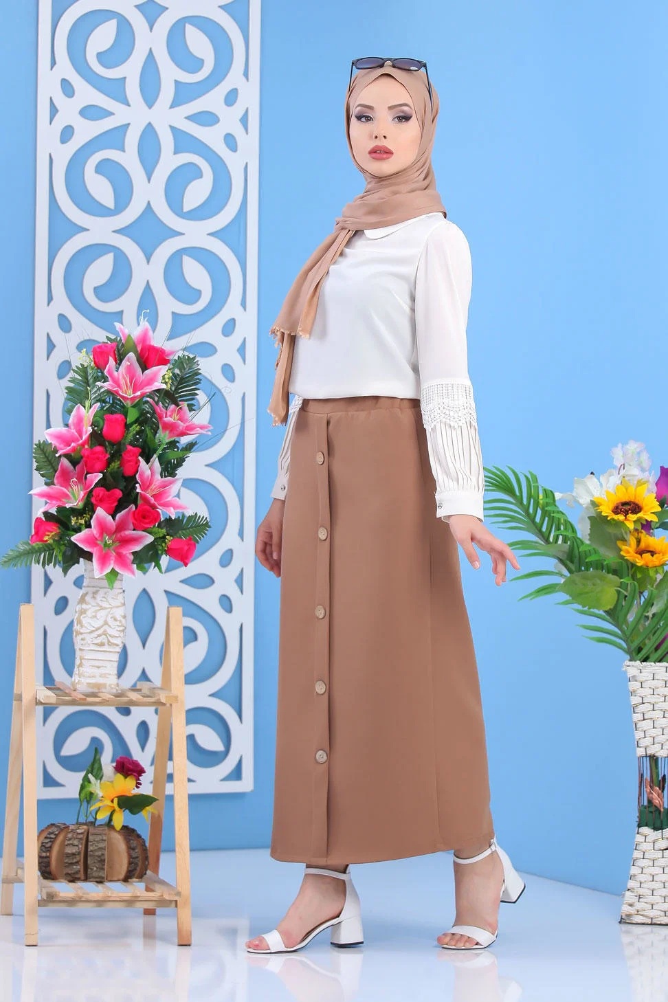 Jupe plissée pour femme (Mode Musulmane) - Couleur Camel - REF. 32284 (12.00 €) - En Promotion à 9.90 €