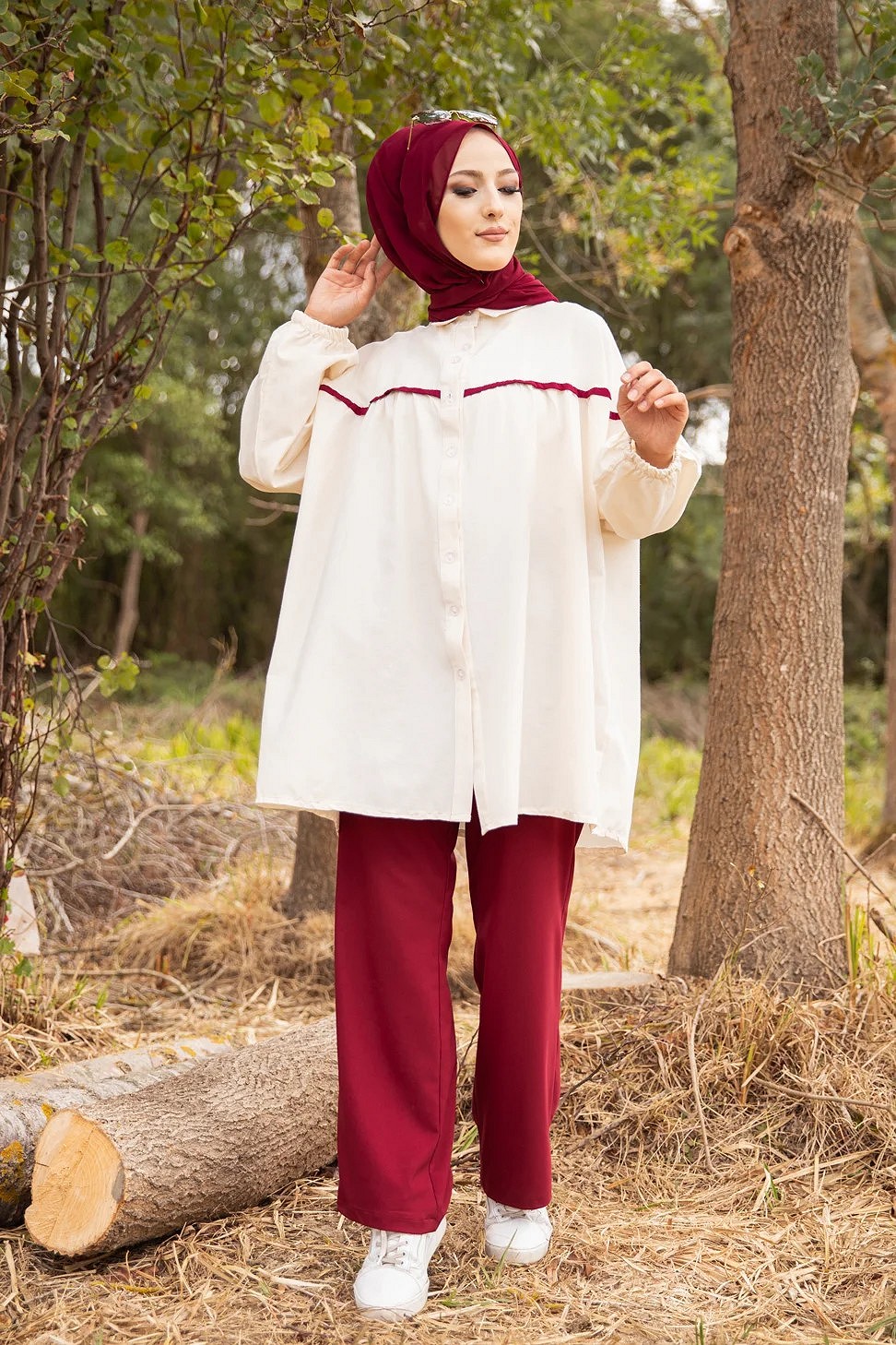 Tunique-Chemise ample pour femme (Modest Fashion) - Couleur Grenat