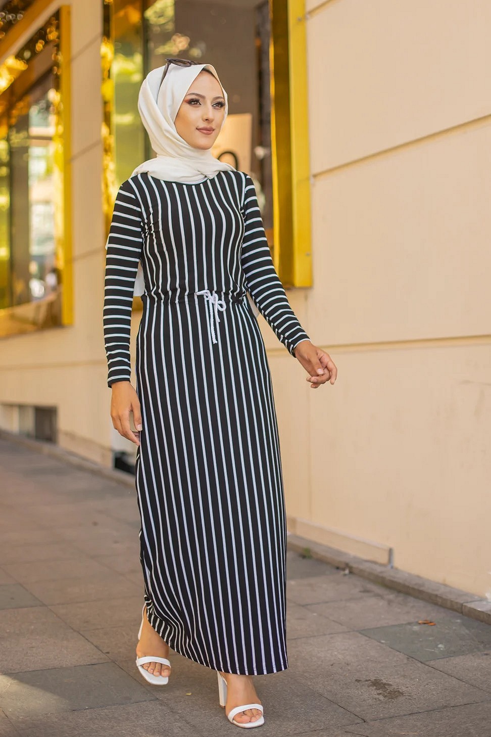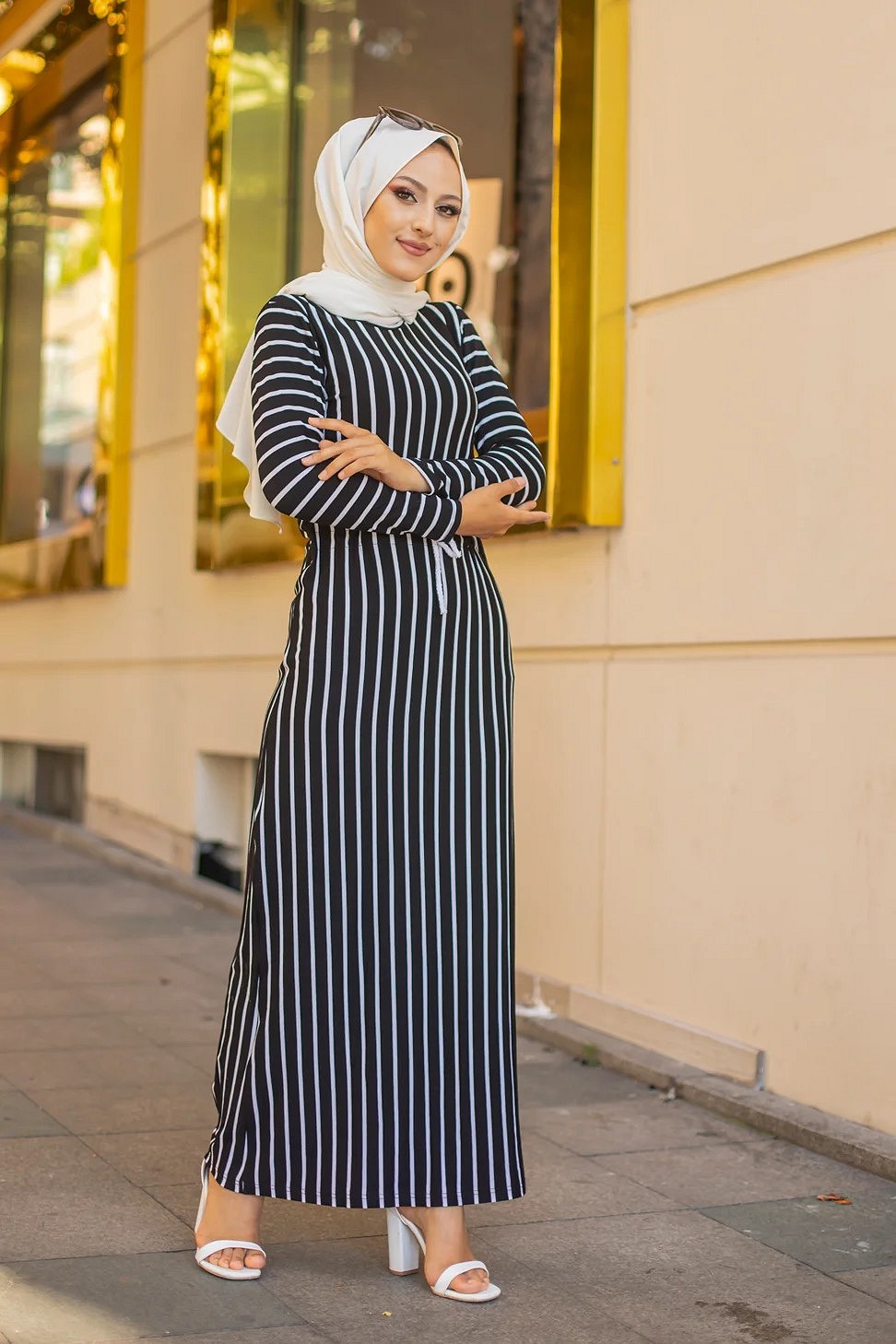 Robe maxi-longue à rayures noire (Vetement Hijab pour femme) Vetement & Accessoire