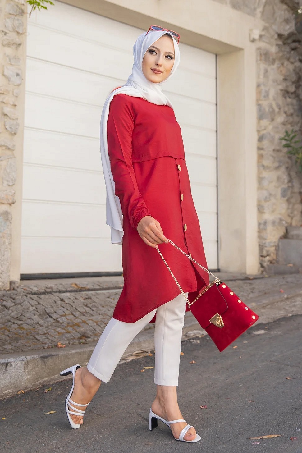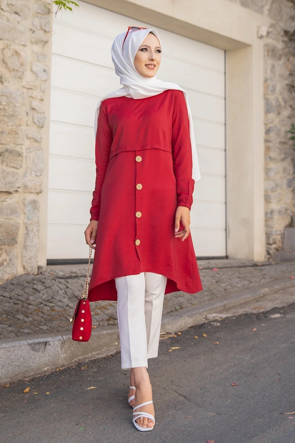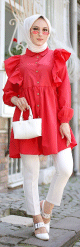 Chemise à froufrou (Vetement femme musulmane en ligne) - Couleur Rouge - REF. 33146 (24.90 €)