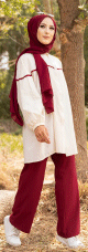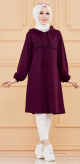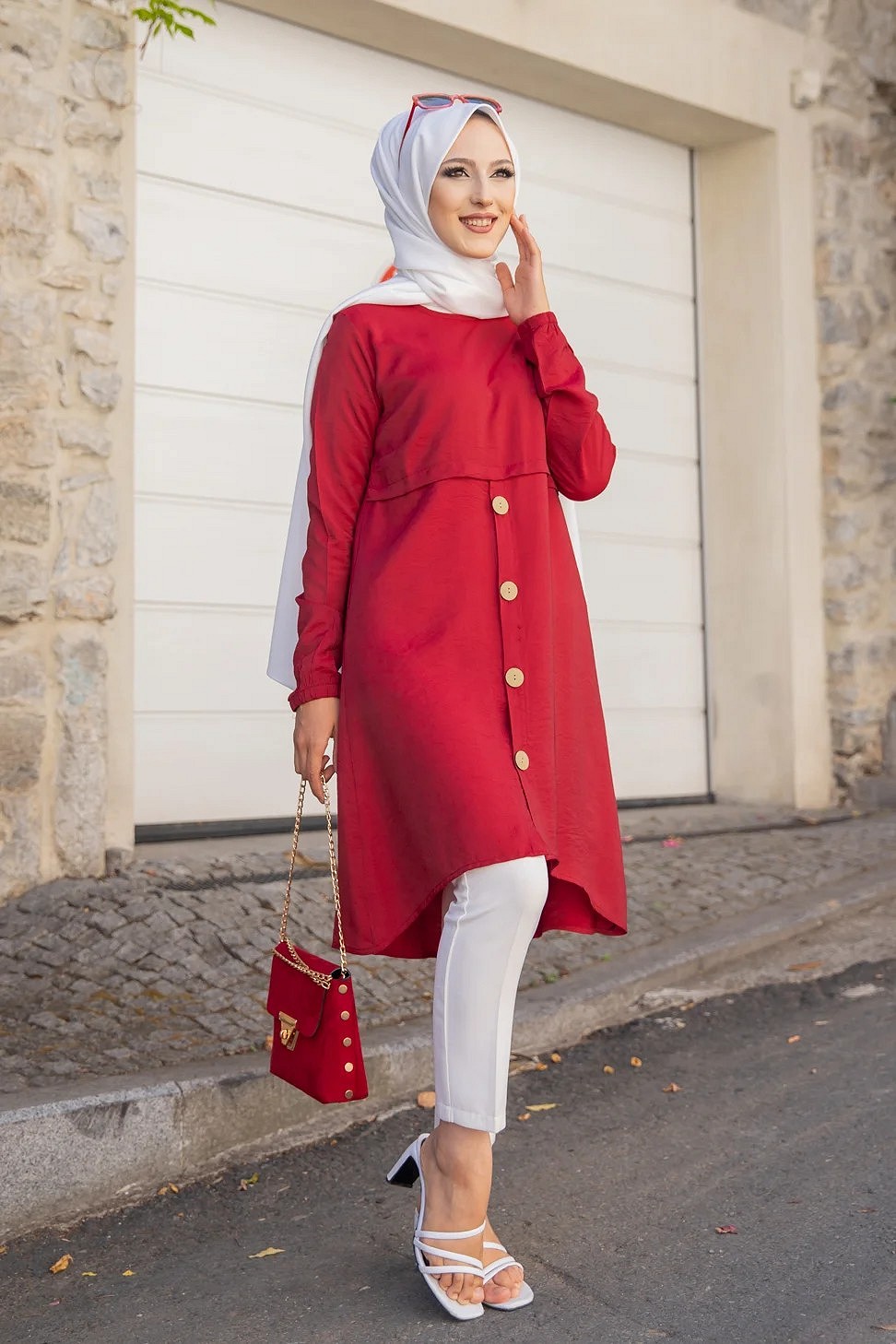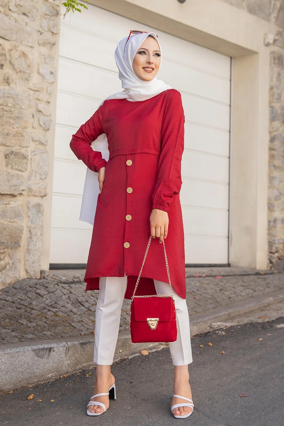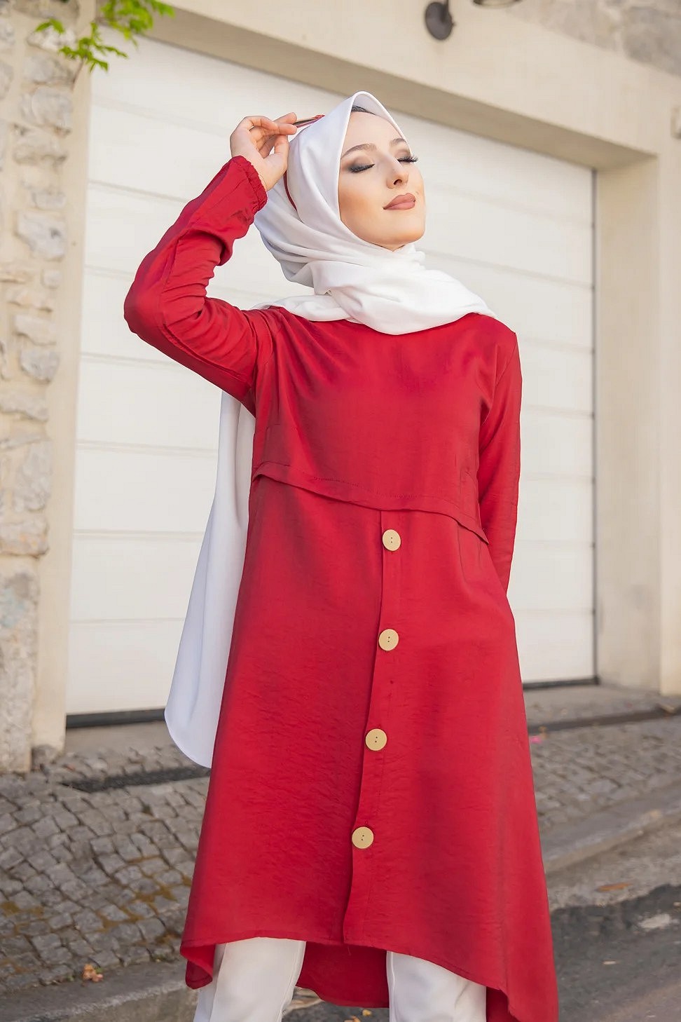 Tunique ample evasee boutonnee (Vetement style habille pour femme voilee) - Couleur Rouge Bordeaux