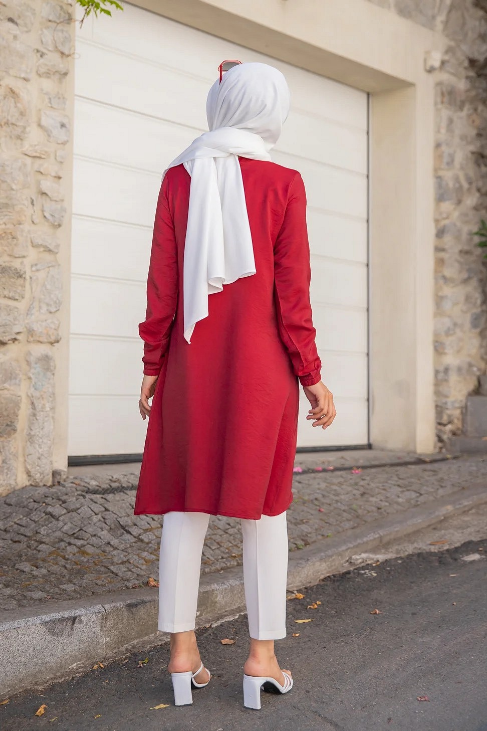 Tunique ample évasée boutonnée (Vetement style habillé pour femme voilée) - Couleur Rouge Bordeaux Vetement & Accessoire
