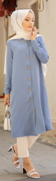 Chemise longue boutonnée type tunique (Boutique Vetement Modest Fashion France) - Couleur bleu indigo - REF. 33873 (25.00 €)