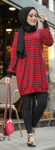 Tunique-Chemise habillée ample (Vêtements islamiques chic en ligne) - Rayures de couleur rouge - REF. 36413 (25.00 €)